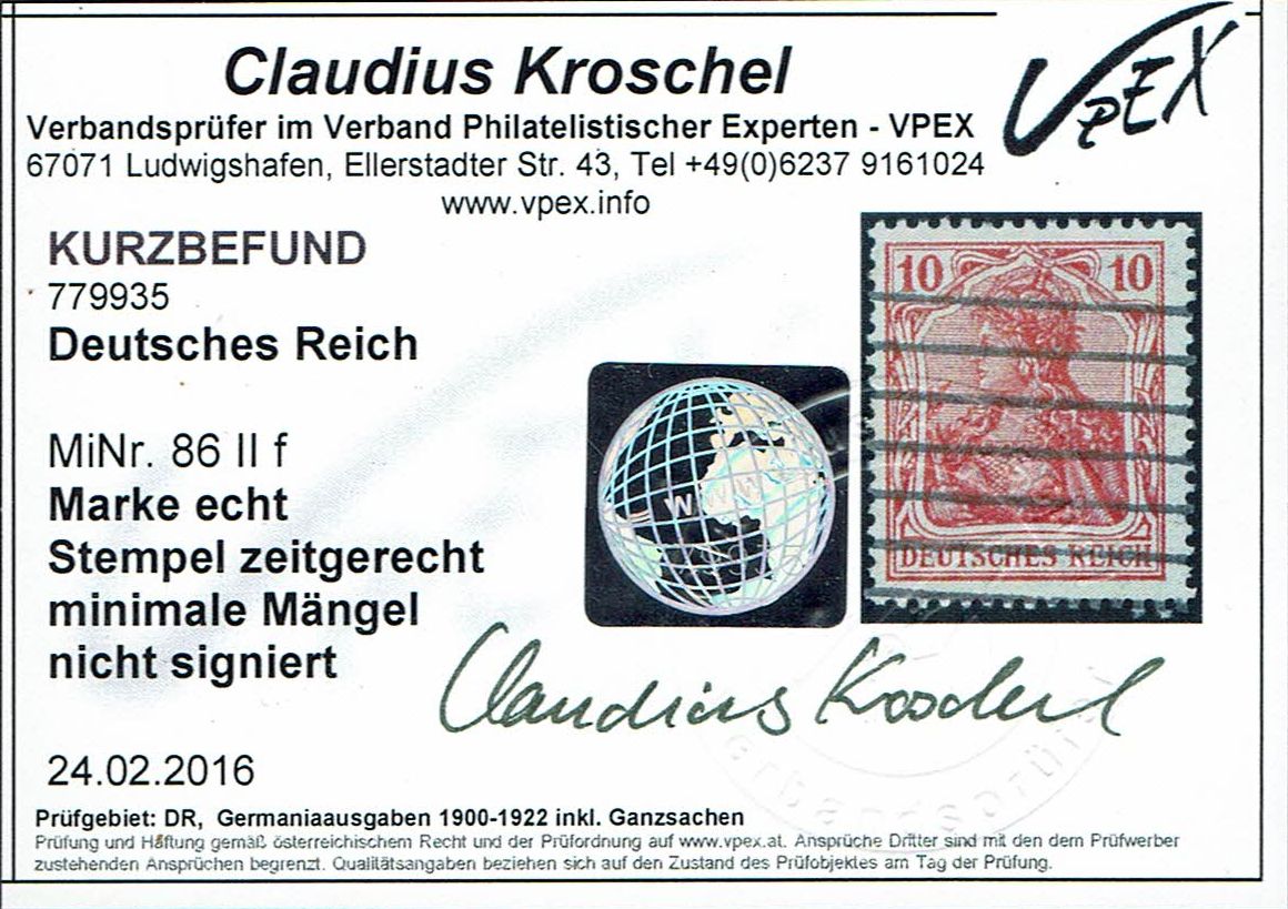 | Prüfer: | Kroschel, Claudius (VPEX (Verband Philatelistischer Experten)) |