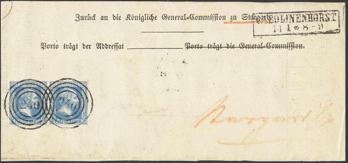| Zusatzinformationen und Suchstichworte: | 72. Deider Auktion 29. Juni - 1. Juli 2023 Los 45 Altdeutschland Preussen 2 Sgr. mattblau auf dünnem Papier im waager. Paar auf Vorderseite eines Dokuments von "240" CAROLINENHORST Ausruf 600,00 EUR |