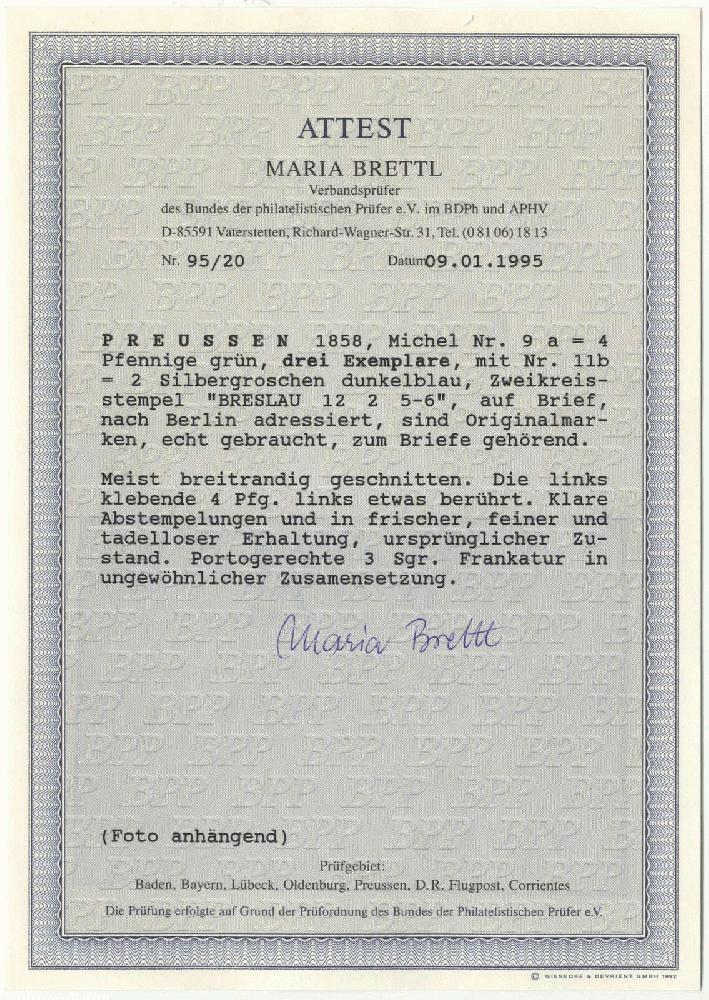 | Prüfer: | Brettl, Maria (BPP (Bund Philatelistischer Prüfer)) |