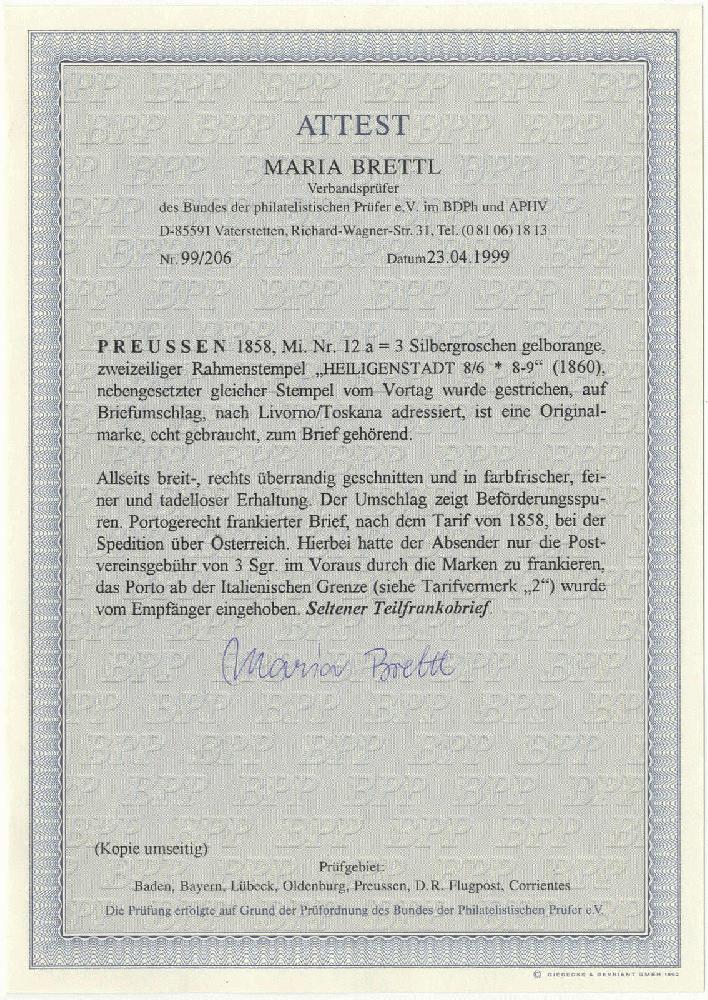 | Prüfer: | Brettl, Maria (BPP (Bund Philatelistischer Prüfer)) |