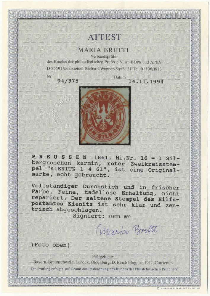 | Prüfer: | Brettl, Maria (BPP (Bund Philatelistischer Prüfer)) |