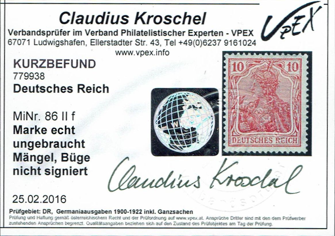 | Prüfer: | Kroschel, Claudius (VPEX (Verband Philatelistischer Experten)) |