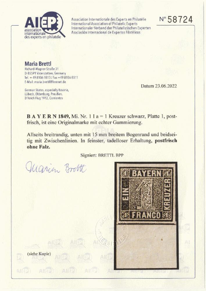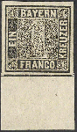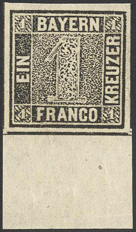 | Zusatzinformationen und Suchstichworte: | 72. Deider Auktion 29. Juni - 1. Juli 2023 Los 1012 Altdeutschland Bayern 1 Kreuzer schwarz, Platte 1, postfrisches, allseits breitrandiges Luxusstück vom Unterrand, dieser 15 mm breit, ein absolutes Traumstück! Ausruf 1.500,00 EUR |