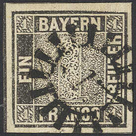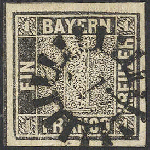 | Zusatzinformationen und Suchstichworte: | 72. Deider Auktion 29. Juni - 1. Juli 2023 Los 1016 Altdeutschland Bayern 1 Kreuzer schwarz, Platte 1, Plattenfehler II (Handbuch), breitrandiges, farbfrisches Luxusstück mit fast zentrischem, klarem "217" (München) Ausruf 1.200,00 EUR |