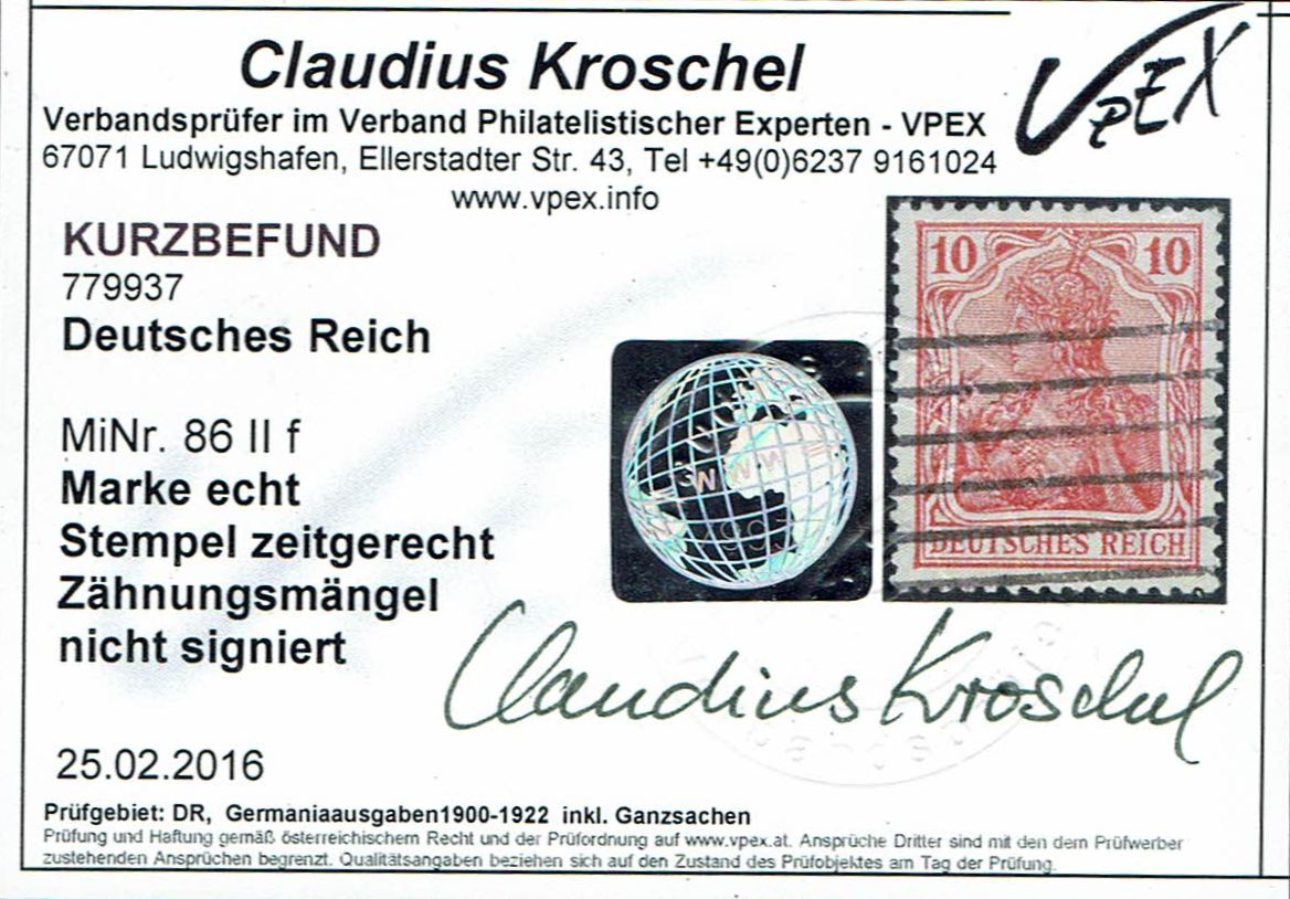 | Prüfgebiet: | Deutsches Reich 1871 - 1918 (Mi-Nr. 1 - 106) |