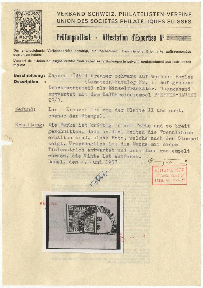 | Prüfer: | Hunziker, Hans (SBPV / ASEP (Schweizerischer Briefmarken-Prüfer-Verband)) |