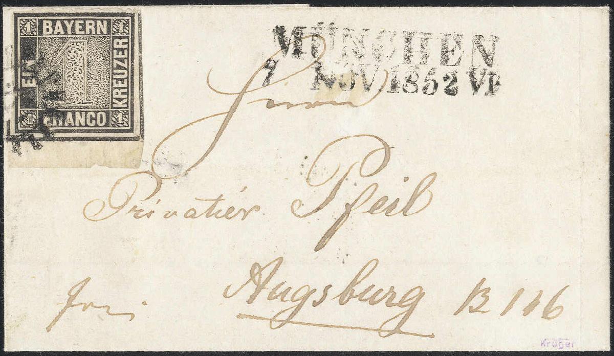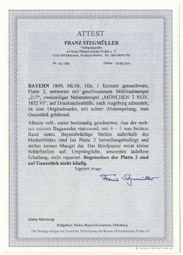 | Zusatzinformationen und Suchstichworte: | 72. Deider Auktion 29. Juni - 1. Juli 2023 Los 1031 Altdeutschland Bayern 1 Kreuzer schwarz, Platte 2, Luxus-Bogenecke mit 4-5 mm Bogenrand auf kleiner Luxus-Drucksache, ziffernfrei gestplt. "217" MÜNCHEN 7. NOV. 1852, enorm seltene Spätverwendung! Ausruf 3.200,00 EUR |