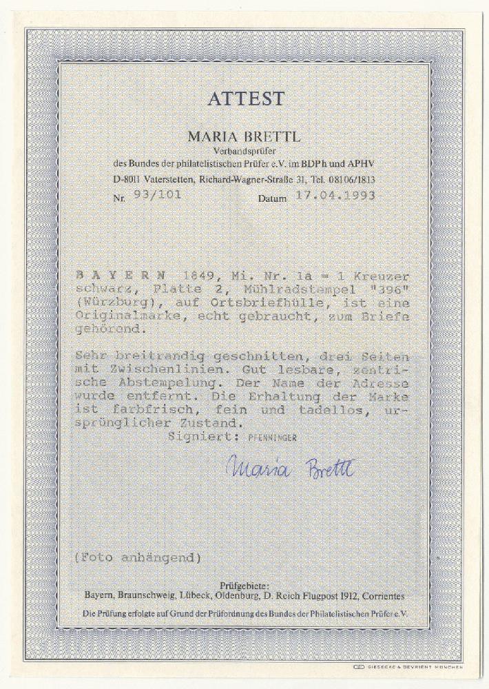 | Zusatzinformationen und Suchstichworte: | 72. Deider Auktion 29. Juni - 1. Juli 2023 Los 1032 Altdeutschland Bayern 1 Kreuzer schwarz, Platte 2, auf feinster Ortsbriefhülle (Anschrift wurde teils entfernt) aus "396" WÜRZBURG Ausruf 1.500,00 EUR |