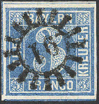 | Zusatzinformationen und Suchstichworte: | 72. Deider Auktion 29. Juni - 1. Juli 2023 Los 1039 Altdeutschland Bayern 3 Kr. blau, Pl. 1, allseits breitrandiges Luxusstück mit sehr klarem, zentr. MR "91" (Freising) entwertet Ausruf 40,00 EUR |