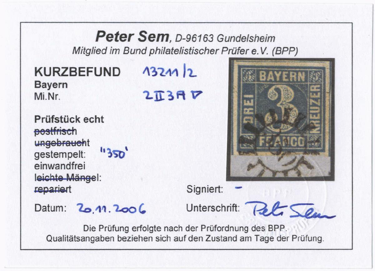 | Prüfer: | Sem, Peter (BPP (Bund Philatelistischer Prüfer)) |