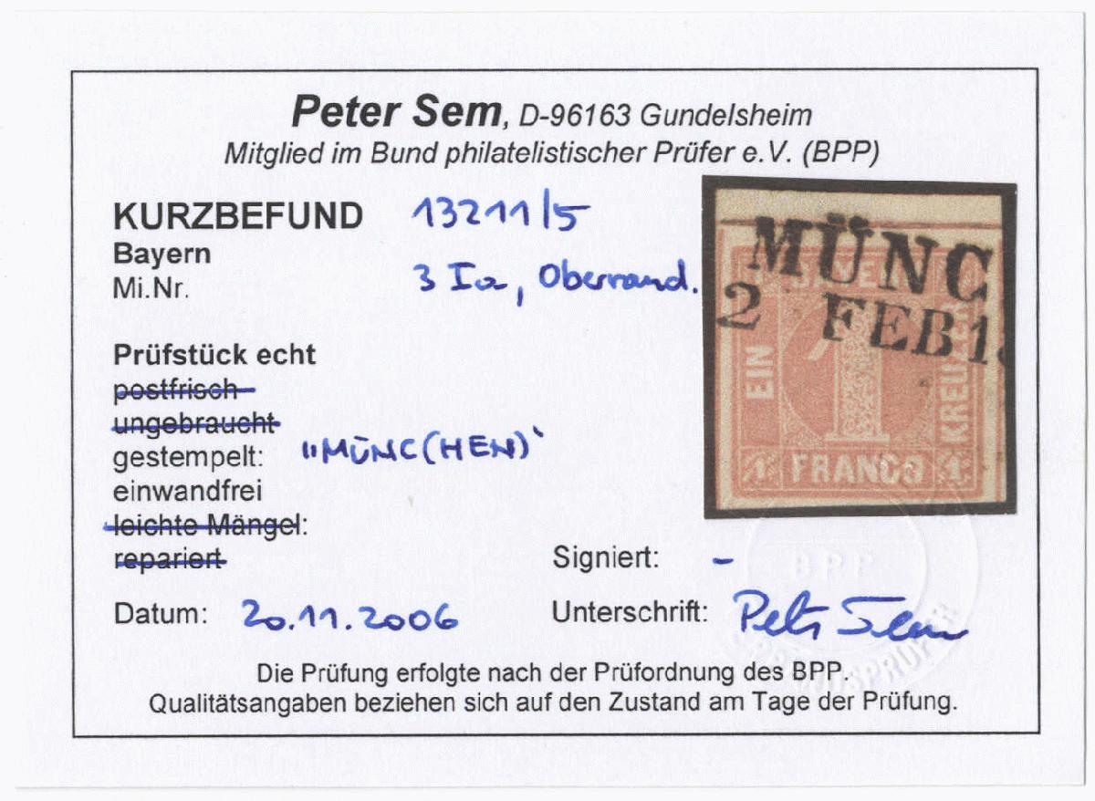 | Prüfer: | Sem, Peter (BPP (Bund Philatelistischer Prüfer)) |