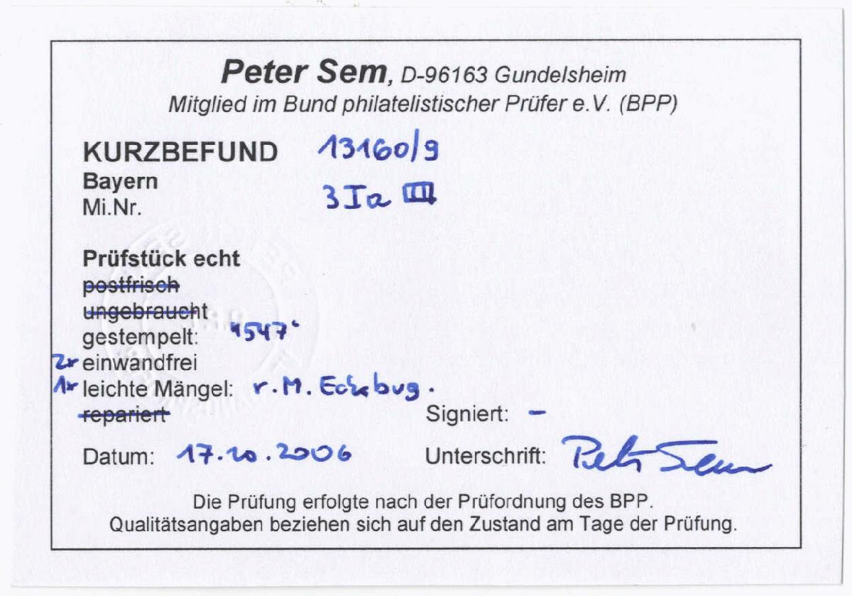 | Prüfer: | Sem, Peter (BPP (Bund Philatelistischer Prüfer)) |