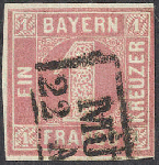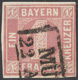 | Zusatzinformationen und Suchstichworte: | 72. Deider Auktion 29. Juni - 1. Juli 2023 Los 1116 Altdeutschland Bayern 1 Kreuzer rosa, Platte 2, vollrandiges Prachtstück (rechts leicht ber., sonst tadellos) in tiefer, frischer Farbe mit Zweizeiler "MÜ(NCHEN) 22 A(UG 1862)" entwertet, registriert unter Nr. "148" Ausruf 420,00 EUR |