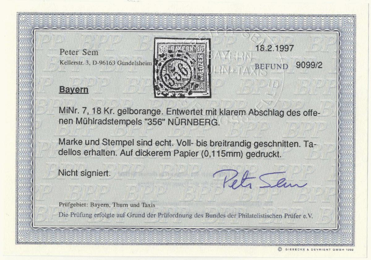 | Prüfer: | Sem, Peter (BPP (Bund Philatelistischer Prüfer)) |