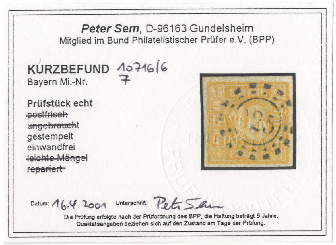 | Prüfer: | Sem, Peter (BPP (Bund Philatelistischer Prüfer)) |