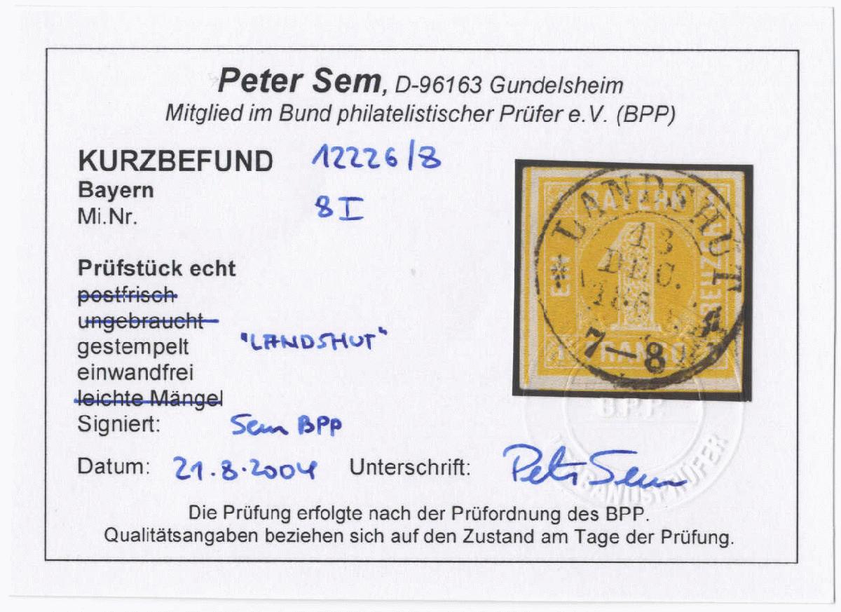 | Prüfer: | Sem, Peter (BPP (Bund Philatelistischer Prüfer)) |