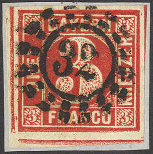 | Zusatzinformationen und Suchstichworte: | 72. Deider Auktion 29. Juni - 1. Juli 2023 Los 1208 Altdeutschland Bayern 3 Kr. tiefrot, voll- bis breitrandiges Luxusstück aus der linken unteren Bogenecke mit sehr klarem und zentr. oMR "32" (Bamberg) Ausruf 50,00 EUR |