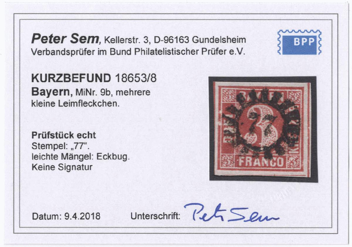 | Prüfer: | Sem, Peter (BPP (Bund Philatelistischer Prüfer)) |