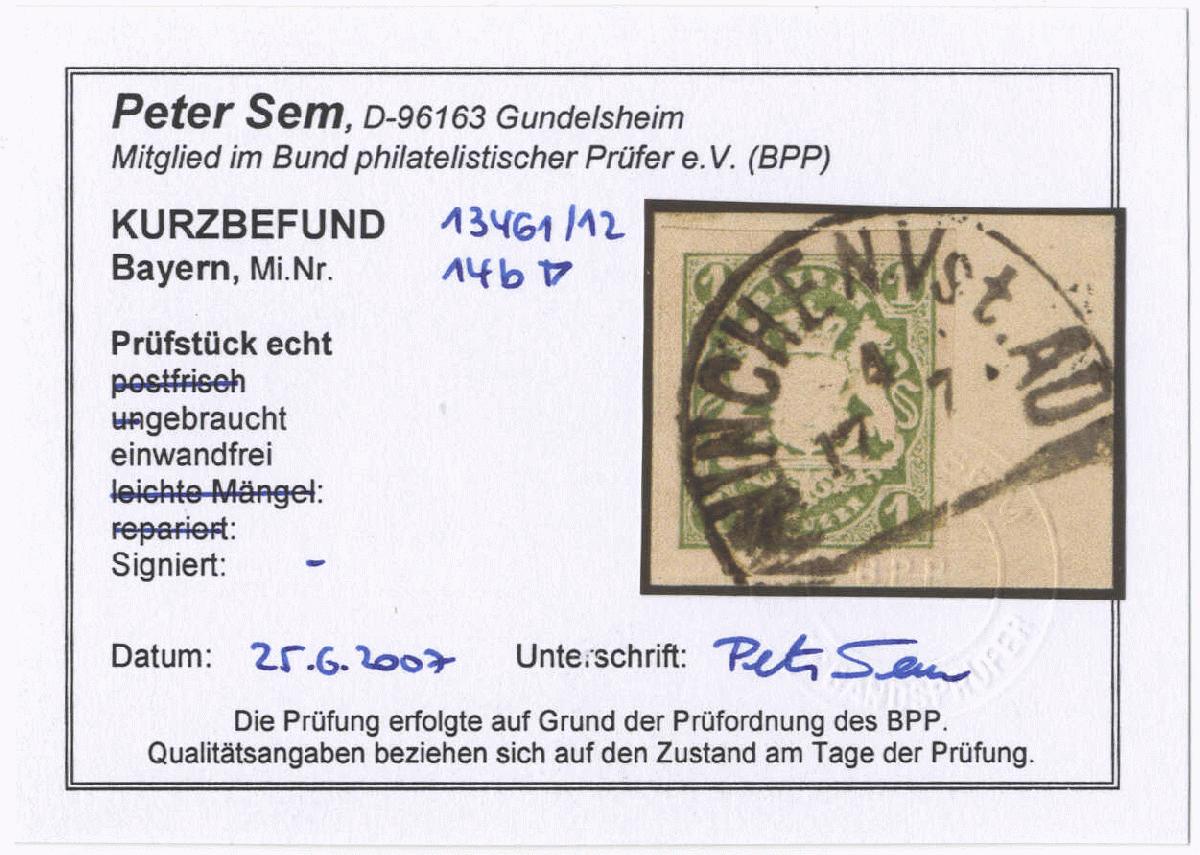 | Prüfer: | Sem, Peter (BPP (Bund Philatelistischer Prüfer)) |