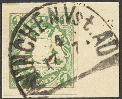 | Zusatzinformationen und Suchstichworte: | 72. Deider Auktion 29. Juni - 1. Juli 2023 Los 1264 Altdeutschland Bayern 1 Kr. dunkelgrün, riesenrandiges Luxusstück mit sehr klarem und kpl. HKS "MÜNCHEN Vst. AU 4 17/7" auf Briefstück Ausruf 30,00 EUR |