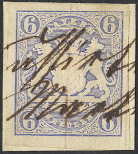 | Zusatzinformationen und Suchstichworte: | 72. Deider Auktion 29. Juni - 1. Juli 2023 Los 1283 Altdeutschland Bayern 6 Kr. hellblau mit 2 Seidenfäden und fiskalischer Entwertung Ausruf 60,00 EUR |