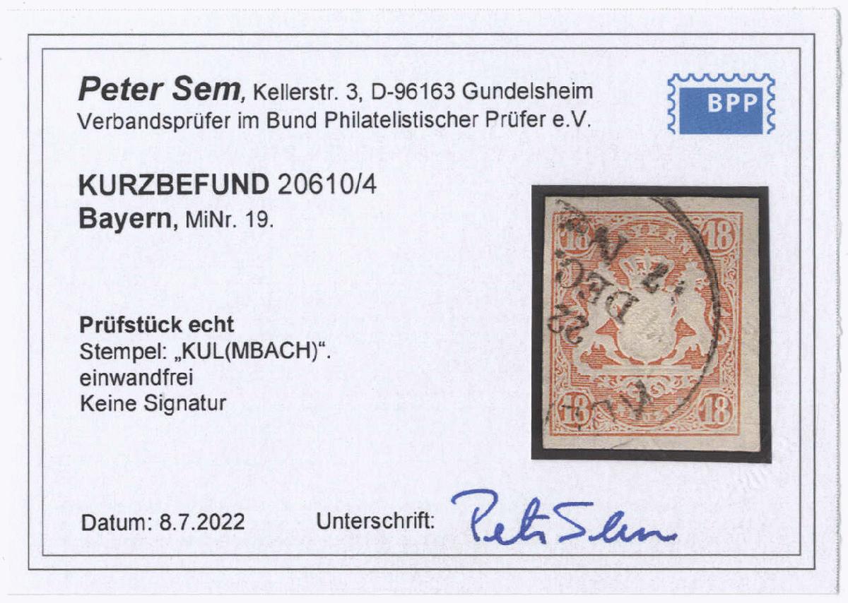 | Prüfer: | Sem, Peter (BPP (Bund Philatelistischer Prüfer)) |