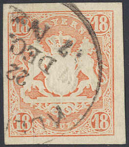 | Zusatzinformationen und Suchstichworte: | 72. Deider Auktion 29. Juni - 1. Juli 2023 Los 1298 Altdeutschland Bayern 18 Kr. ziegelrot, farbfrisches Prachtstück mit K1 "KULMBACH" Ausruf 80,00 EUR |