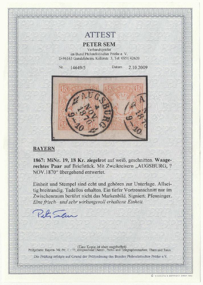 | Prüfer: | Sem, Peter (BPP (Bund Philatelistischer Prüfer)) |
