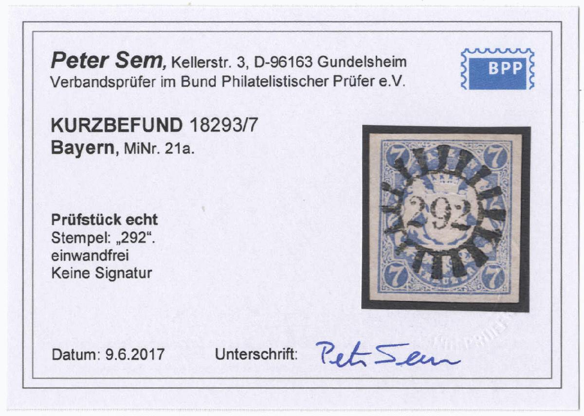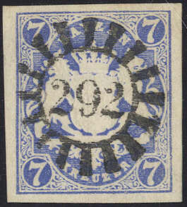 | Zusatzinformationen und Suchstichworte: | 72. Deider Auktion 29. Juni - 1. Juli 2023 Los 1306 Altdeutschland Bayern 7 Kr. ultramarin, Luxusstück mit zentr. MR "292" Ausruf 60,00 EUR |
