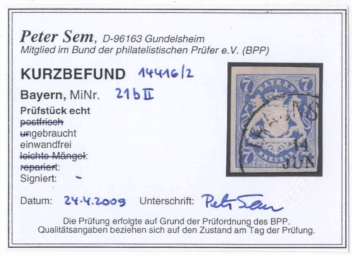 | Prüfer: | Sem, Peter (BPP (Bund Philatelistischer Prüfer)) |