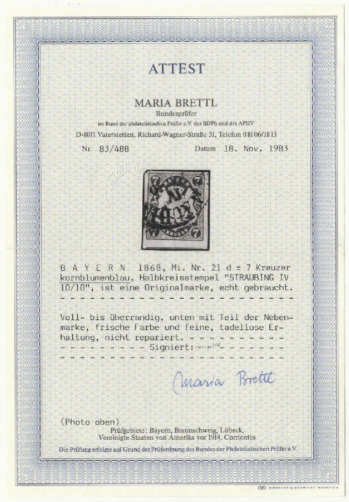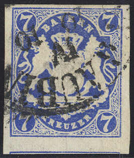 | Zusatzinformationen und Suchstichworte: | 72. Deider Auktion 29. Juni - 1. Juli 2023 Los 1318 Altdeutschland Bayern 7 Kr. kornblumenblau, voll- bis überrandiges Luxusstück, unten mit Teil der Nachbarmarke und HKS "(S)TRAUBIN(G) IV 10/10" Ausruf 220,00 EUR |