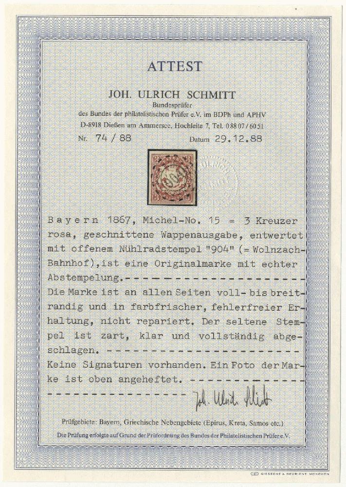 | Prüfer: | Schmitt, Joh. Ulrich (BPP (Bund Philatelistischer Prüfer)) |