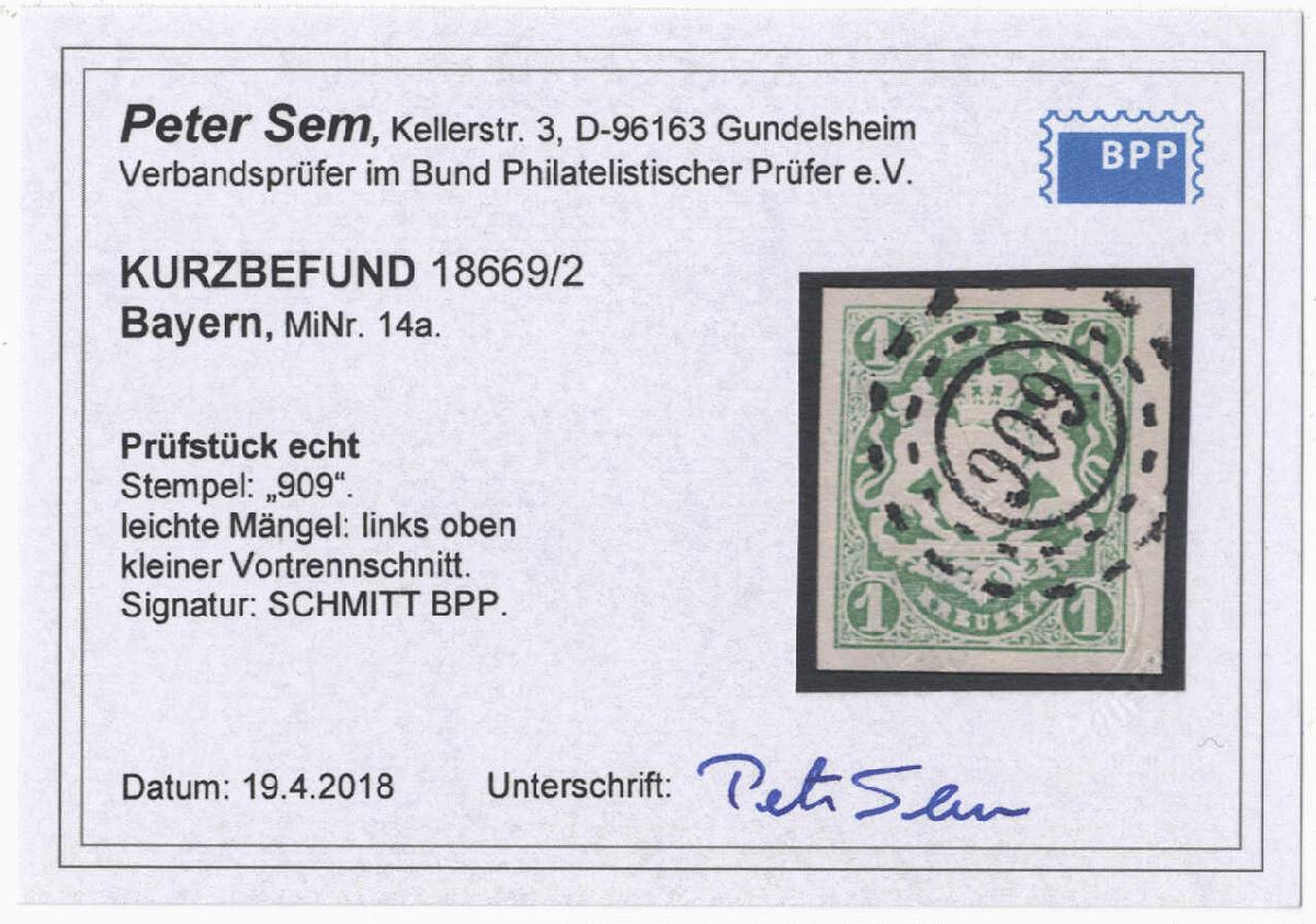 | Prüfer: | Sem, Peter (BPP (Bund Philatelistischer Prüfer)) |
