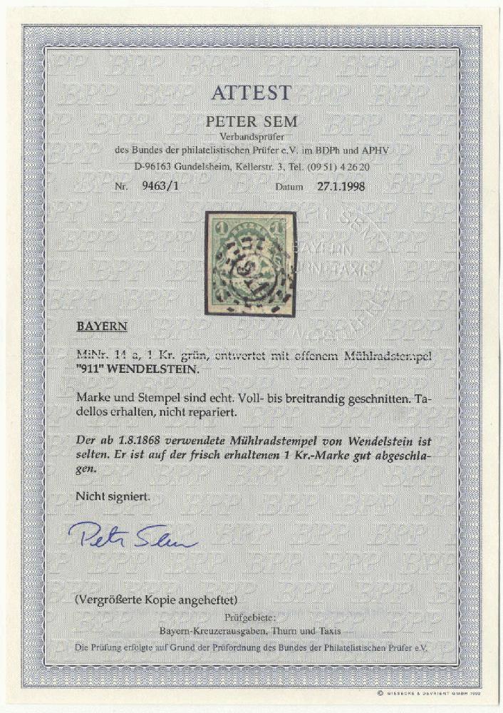 | Zusatzinformationen und Suchstichworte: | 72. Deider Auktion 29. Juni - 1. Juli 2023 Los 1832 Altdeutschland Bayern "911" WENDELSTEIN, seltener Stpl. auf Kabinettstück 1 Kr. grün Ausruf 500,00 EUR |