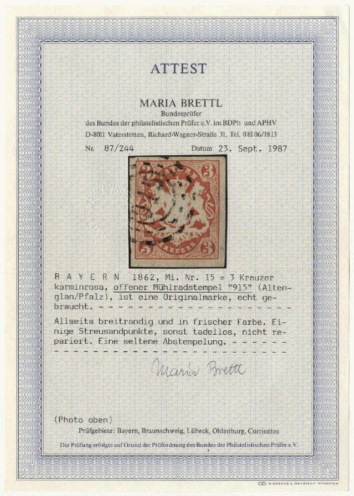 | Prüfer: | Brettl, Maria (BPP (Bund Philatelistischer Prüfer)) |