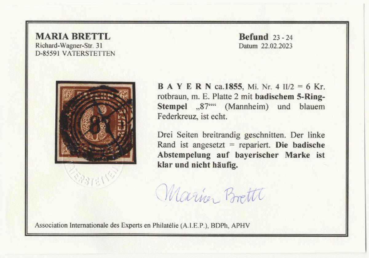| Prüfer: | Brettl, Maria (AIEP (Association internationale des experts en philatélie)) |