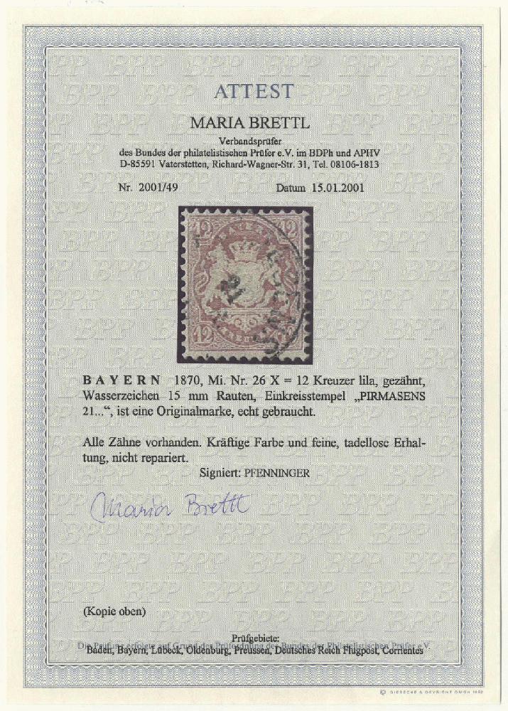 | Prüfer: | Brettl, Maria (BPP (Bund Philatelistischer Prüfer)) |