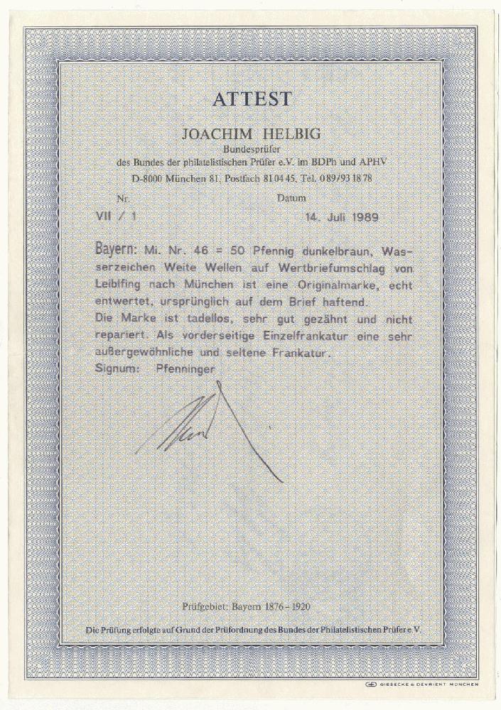 | Zusatzinformationen und Suchstichworte: | 72. Deider Auktion 29. Juni - 1. Juli 2023 Los 1979 Altdeutschland Bayern 50 Pfg. braun vorderseitig feinst gezähnt auf gefalt. Wertbrief mit K1 "LEIBLFING" Ausruf 600,00 EUR |