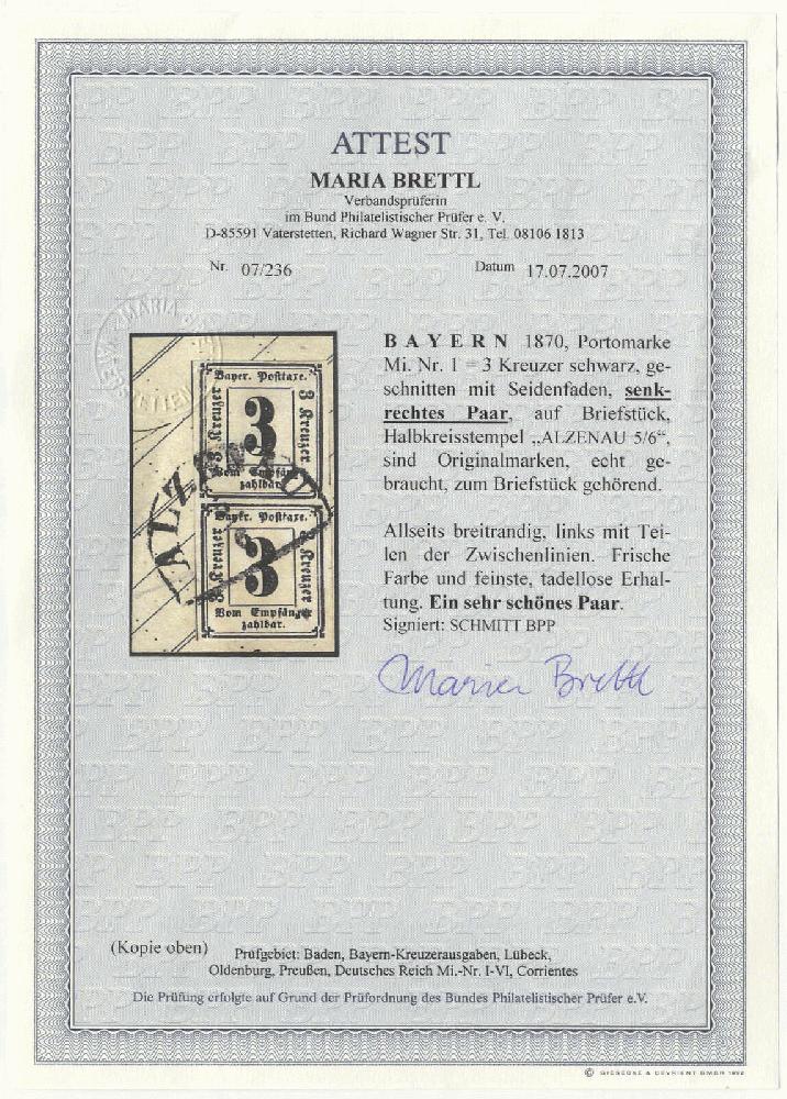 | Prüfgebiet: | Altdeutschland Bayern Portomarken |
