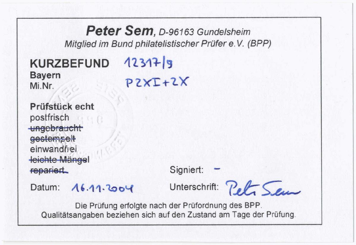 | Prüfgebiet: | Altdeutschland Bayern Portomarken |