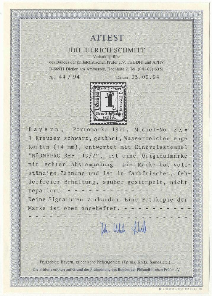 | Prüfgebiet: | Altdeutschland Bayern Portomarken |