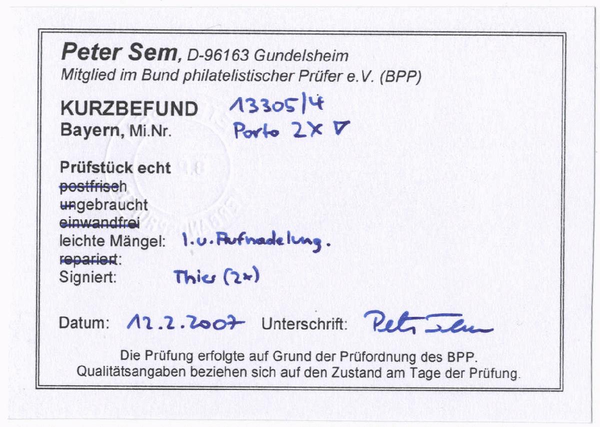 | Prüfgebiet: | Altdeutschland Bayern Portomarken |