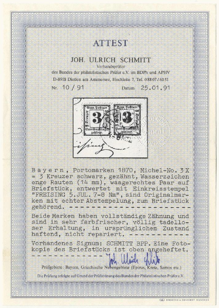 | Prüfgebiet: | Altdeutschland Bayern Portomarken |
