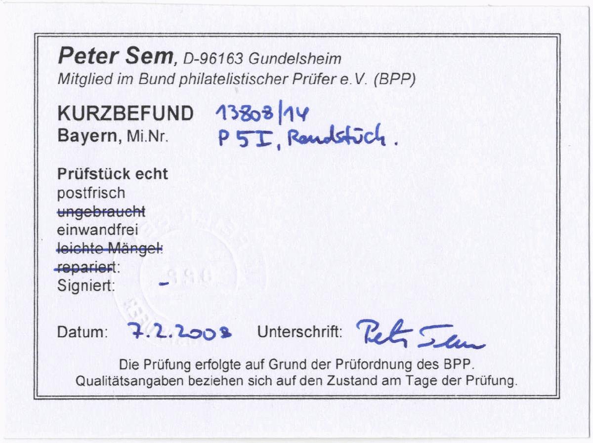 | Prüfgebiet: | Altdeutschland Bayern Portomarken |
