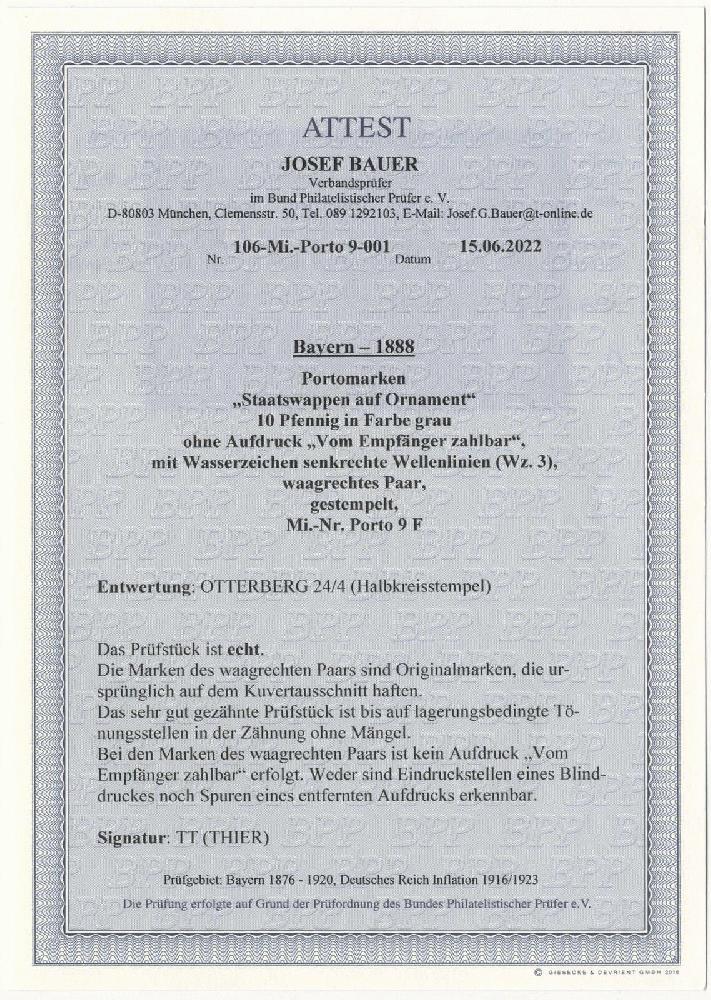 | Prüfgebiet: | Altdeutschland Bayern Portomarken |