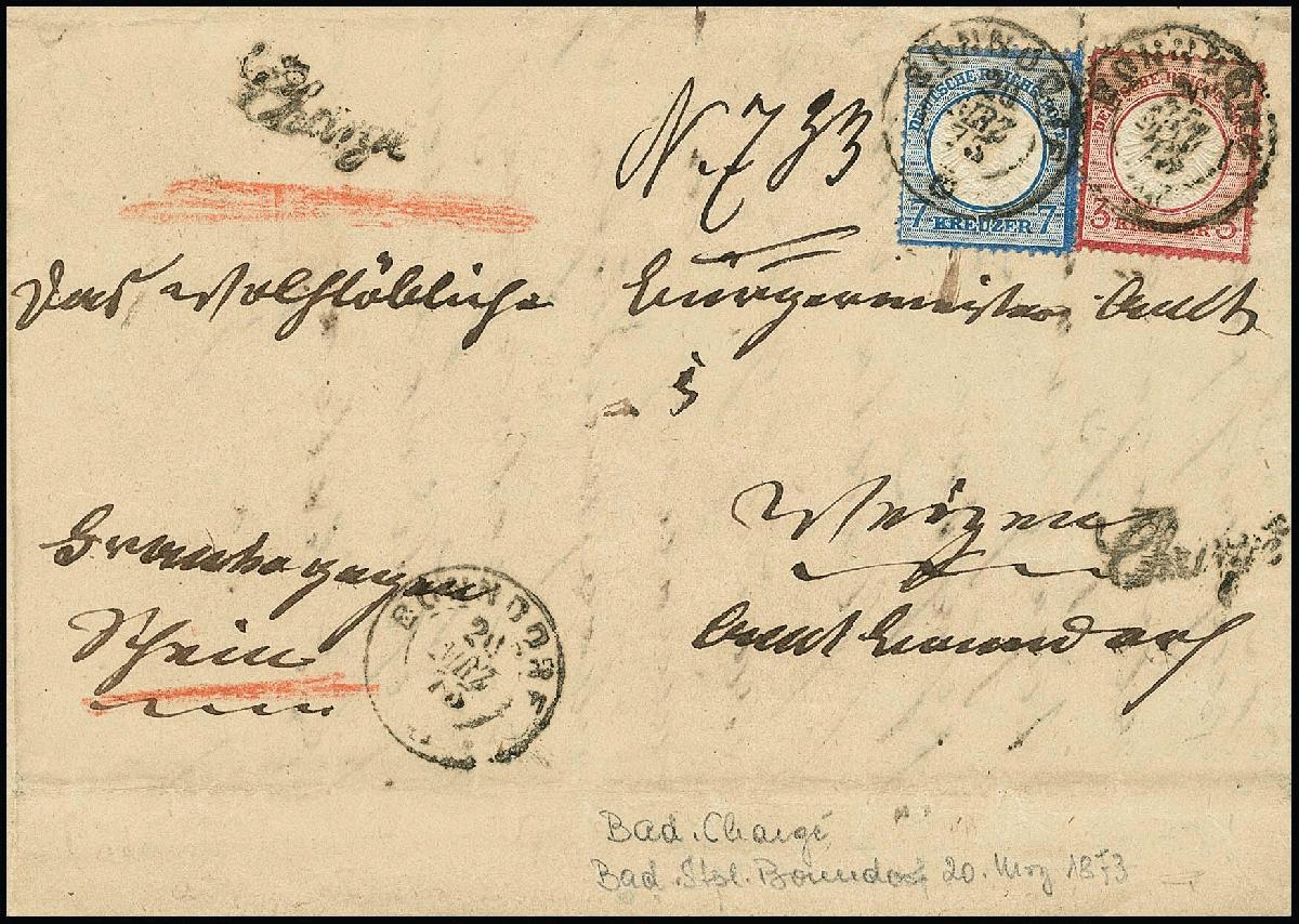 | Zusatzinformationen und Suchstichworte: | Rauhut & Kruschel - 219. Auktion 29. Juli 2023 Los 20 Altdeutschland Baden "Bonndorf", nachverw. K2 klar auf Chargébrief mit gr. Brustschild 3 (zwei kurze Zähnchen) und 7 Kr. nach Weizen Ausruf 100,00 EUR |