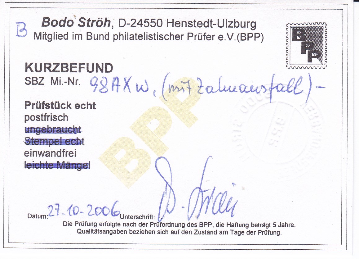| Prüfer: | Ströh, Bodo (BPP (Bund Philatelistischer Prüfer)) |