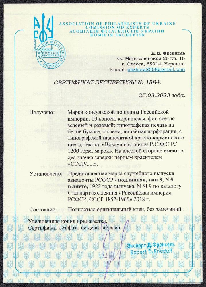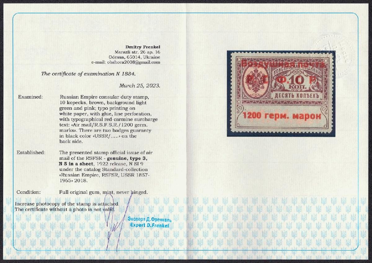 | Zusatzinformationen und Suchstichworte: | Oldlouis 30. Auktion - Russland, Territorien & Ukraine 4 - 7. Juli 2023 Los 657 Sowjetunion Konsulats Marken 1922 1200 Germ Mark Konsulatsgebührenmarke, Luftpost, RSFSR, Russland (Zag. SI 9, Zv. C5, Typ III, Position. 5, Attest, CV $3,250, postfrisch). Postfrisch Ausruf 350,00 USD |