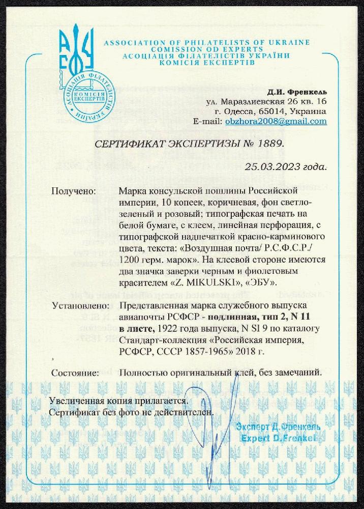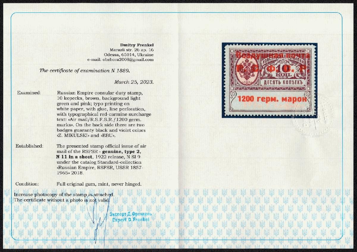 | Zusatzinformationen und Suchstichworte: | Oldlouis 30. Auktion - Russland, Territorien & Ukraine 4 - 7. Juli 2023 Los 658 Sowjetunion Konsulats Marken 1922 1200 Germ Mark Konsulatsgebührenmarke, Luftpost, RSFSR, Russland (Zag. SI 9, Zv. C5, Typ II, Position. 11, Attest, signiert, CV $1,050). Ungebraucht mit kleinem Falz Ausruf 300,00 USD |