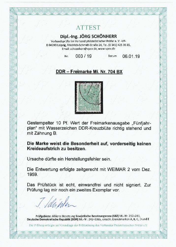 | Zusatzinformationen und Suchstichworte: | DDR Mi-Nr. 704 B X mit der Abart, dass sich auf dem Briefmarkenpapier vorderseitig kein Kreideaufstrich befindet, siehe auch: https://www.philaseiten.de/cgi-bin/index.pl?PR=195094 Die Briefmarke wurde in Weimar im Dezember 1959 postalisch verwendet und ist attestiert Schönherr VP. Zur Prüfung lag ein zweites Exemplar vor. |